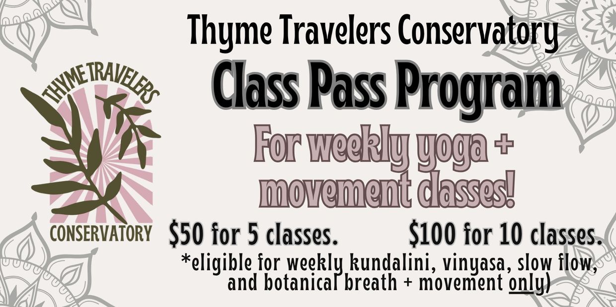 These class passes will only be valid for weekly Kundalini, Vinyasa, Slow Flow, and Botanical Breath and Movement through November 22.